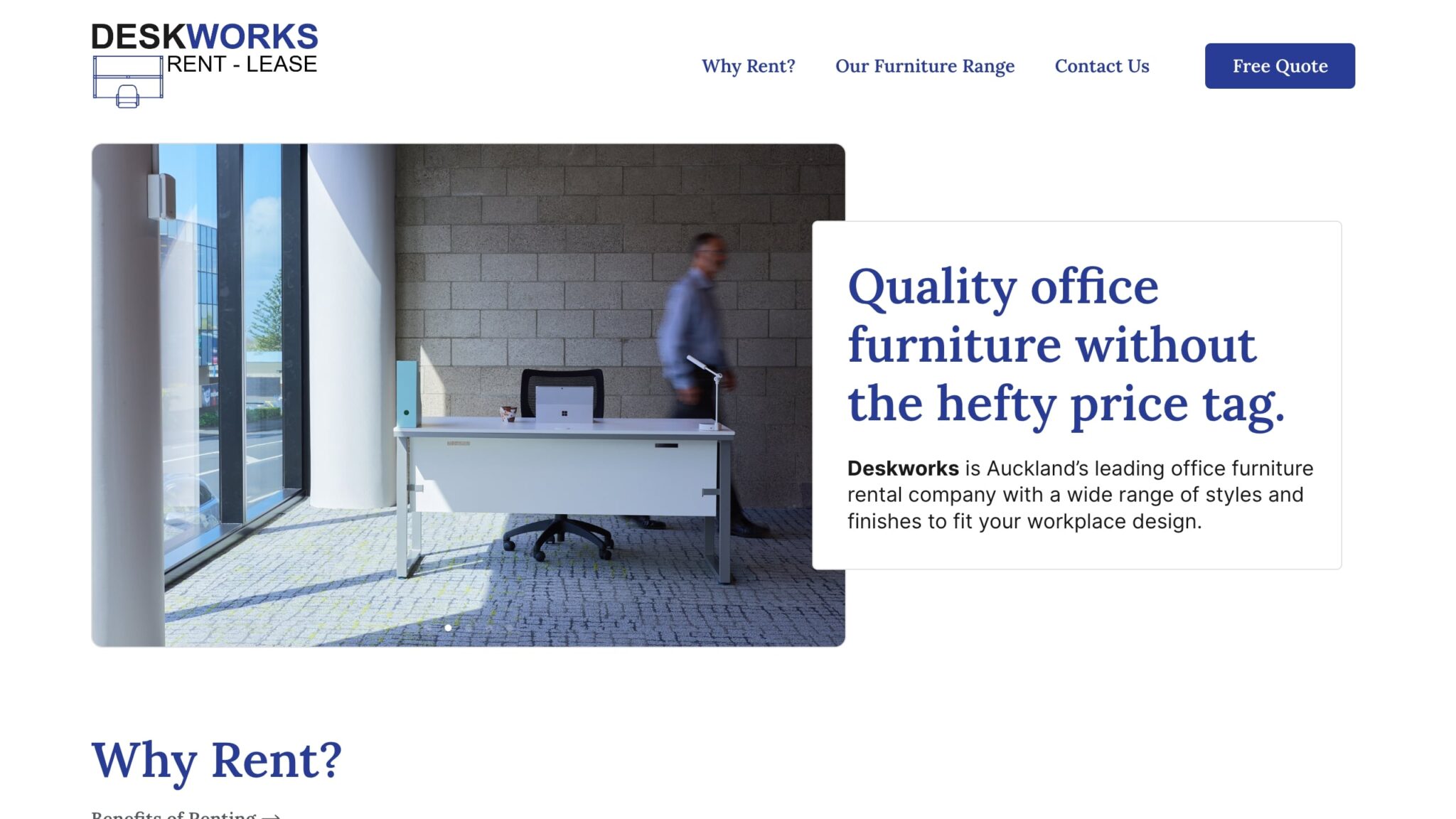 Corporate website design for commercial office furniture leasing business based in Auckland.