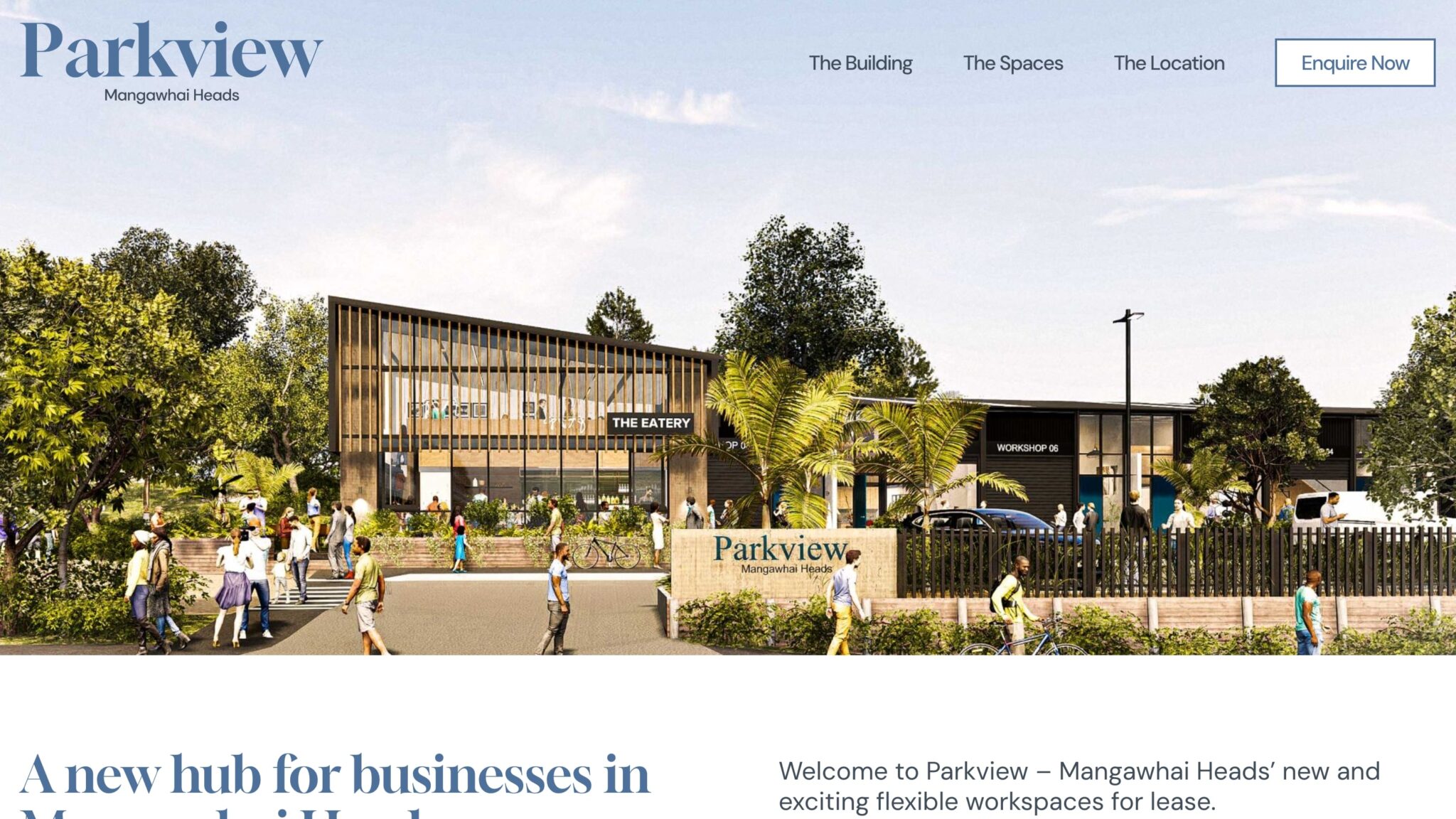 Branding and website design for a build-to-rent commercial business park in Mangawhai Heads.